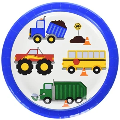 Package includes: 8 pieces traffic jam round paper dessert plate These plates feature a fire truck, police car, cement mixer, yellow school, and other transport car images in white background and blue border Use these plates to serve sweet desserts and treats These plates are made of durable and sturdy paper Each plate measures 7" Match it with other traffic jam party decorations and party supplies, Manufacturer: Creative Converting