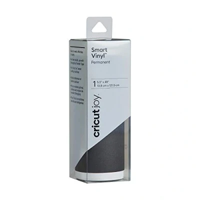 One roll of Cricut Joy Vinyl in Black, 1.2m (4ft) Cricut Joy Permanent Smart Vinyl is great for creating custom decals for outdoor signs, water bottles, mailboxes and more. Water-resistant and UV-resistant vinyl with a permanent adhesive. Easy to weed, effortless to apply. Compatible with Cricut Joy