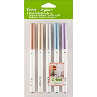 5 medium point (1.0) pens in Gold, Silver, Copper, Blue, Violet Add a special touch to written or drawn projects Ideal for event invitations, decor for birthday bashes, or adding a "handwritten" message to any project For all Cricut Explore and Cricut Maker machines (Cricut Explore One requires the Accessory Adapter, sold separately)