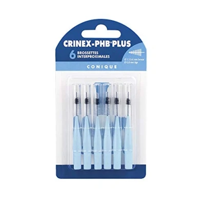 6 x ph B plus conical crinex brushes. The brush is equipped with a brush that ranges from 3, 5 to 6 mm in diameter. Tynex fibres guarantee efficiency and durability Two-tone fibers to identify bleeding and plaque Polyurethane coated stainless steel shaft to prevent injury Protective cap for the brush, which attaches to the base of the handle and allows it to be extended