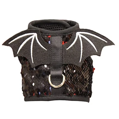 Dog Harness for Cats and Dogs With bat wings Costume and fashion in one Adjustable waist belt and collar with Velcro fastener Reversible Sequins (Red/Black)