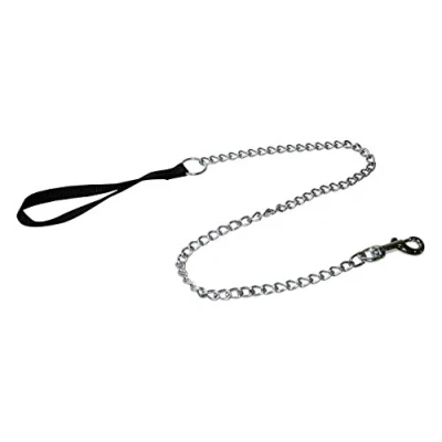 Leash for pets Handle in very strong nylon, chain in silver color Practical and resistant Hook in silver color metal 100x4cm black
