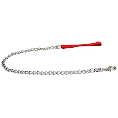 Leash for pets Handle in very strong nylon, chain in silver color Practical and resistant Hook in silver color metal 100x4cm red