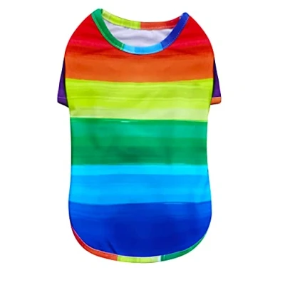 Pet T-Shirts Colourful rainbow pattern Elasticated stomach for comfort 25 cm Lightweight and soft fabric suitable for the summer season