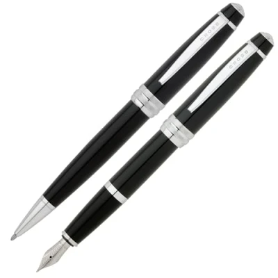 Cross Bailey Ballpoint Pen and Fountain Gift Set (Medium Nib Size) Black Ink Colour Lacquer