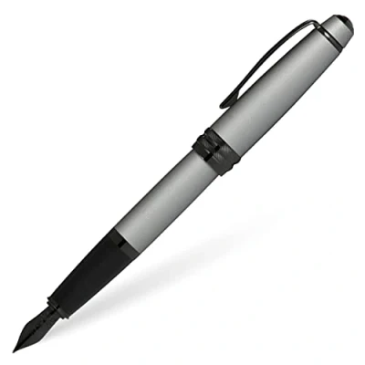 CROSS Bailey Matte Grey Lacquer Fountain Pen with Polished Black PVD Attributes Extra Fine Nib