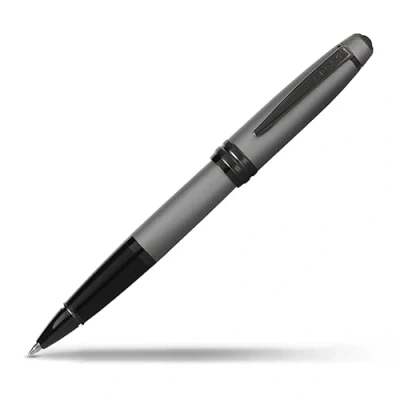 CROSS Bailey Matte Grey Lacquer Rolling Ball Pen with polished black PVD appointments