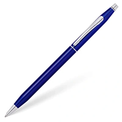 An icon of American design and innovation. The choice of movers, shakers and ground breakers since 1946. Translucent blue lacquer finish with chrome appointments - Ball point pen with trademark conical tip and chrome appointments provides smooth, consistent ink flow. Black, medium ballpoint; comes with specially formulated ink that flows flawlessly for a superior writing experience. Takes refill #8513 Features CROSS Lifetime Mechanical Guarantee Your CROSS pen is presented in a CROSS premium gift box