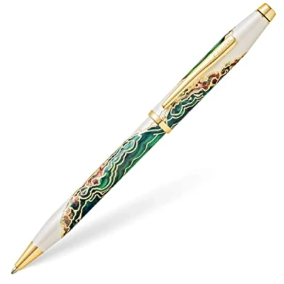 Borneo-inspired green design on white lacquer with gold-plated engravings and appointments Swivel-action propel/repel feature Specially formulated ink flows flawlessly for a superior writing experience Includes one black medium ballpoint tip in pen (refill #8513) Presented in a premium Cross gift box and covered by a Lifetime Mechanical Warranty