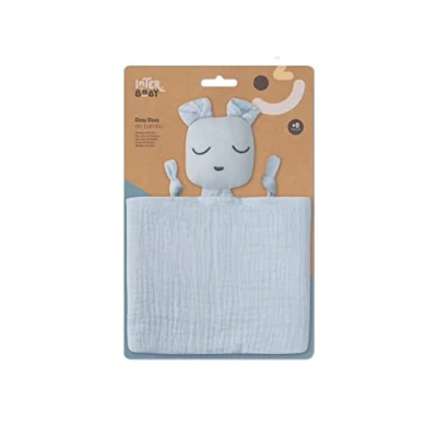 Cuddle Blanket Muslin with Bear Head Doudou Blue