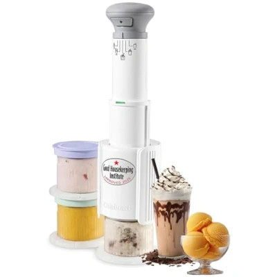 THE MAGIC OF THREE FLAVOURS AT ONCE: Why settle for one when you can have three? Whip up 3 different frozen treats one after the other - perfect for satisfying multiple cravings at once! YOUR FLAVOUR, YOUR WAY: Get creative with your frozen desserts! Add fresh ingredients and mix-ins, whether you’re in the mood for indulgent combinations or want to go high-protein, dairy-free, or vegan 5 PRESETS, 5 MINUTES: With five easy-to-use functions – ice cream, slushie, milkshake, sorbet, and mix-ins – you can effortlessly create a variety of frozen delights in as little as 5 minutes PERFECT TEXTURE EVERY TIME: Mix-ins feature ensures your chocolate chips, fresh fruit, and other goodies are evenly mixed for a smooth, consistent texture throughout SPACE-SAVING DESIGN WITH HANDHELD CONVENIENCE: Small but mighty! Enjoy the ease of handheld operation, plus stackable dessert cups, making storage quick and easy - even in the tiniest kitchens, Weight: 4.299014109 Pounds, Manufacturer: Cuisinart