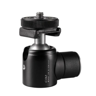 Aluminium ball head with reversible head plate for cameras and flash units Stable ball head with safe clamping, high quality workmanship Various possibilities due to 1/4" thread and hotshoe (acc. to standard), ideal for compact / system cameras and for use as inclinable flash holder in studio Made in Germany Box content: Aluminium ball head with reversible head plate for camera and flash units