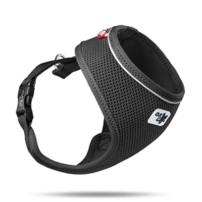 Perfect fit for small and medium-sized dogs: The curli BASIC HARNESS AIR-MESH dog harness ensures a perfect fit to your dog's chest thanks to the adjustable chest strap. Ideal for any adventure: while the closed pull safety eyelet at the back of the harness ensures optimal pressure distribution, the front safety eyelet allows stress-free control of your dog. Share moments together: The Air-Mesh material of the chest harness ensures high breathability, so you can experience unforgettable memories with your dog even on hot days. Sophisticated accessories for your dog: The integrated DogFinder ID as well as the reflective hem at the neck area of the dog harness guarantee a safe walk even in the dark. Scope of delivery: curli BASIC HARNESS AIR-MESH dog harness (safety harness, step-in chest harness, two attachment loops, air mesh upper material) - incl. DogFinder ID - size: M - Black