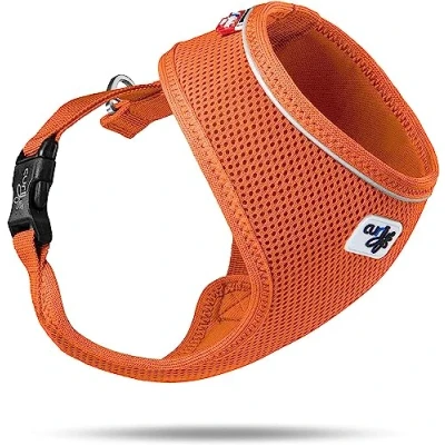 Perfect fit for small and medium-sized dogs: The curli BASIC HARNESS AIR-MESH dog harness ensures a perfect fit to your dog's chest thanks to the adjustable chest strap. Ideal for any adventure: while the closed pull safety eyelet at the back of the harness ensures optimal pressure distribution, the front safety eyelet allows stress-free control of your dog. Share moments together: The Air-Mesh material of the chest harness ensures high breathability, so you can experience unforgettable memories with your dog even on hot days. Sophisticated accessories for your dog: The integrated DogFinder ID as well as the reflective hem at the neck area of the dog harness guarantee a safe walk even in the dark. Scope of supply: curli BASIC HARNESS AIR-MESH dog harness (safety harness, step-in chest harness, two attachment loops, air mesh upper material) - incl. DogFinder ID - size: S - orange