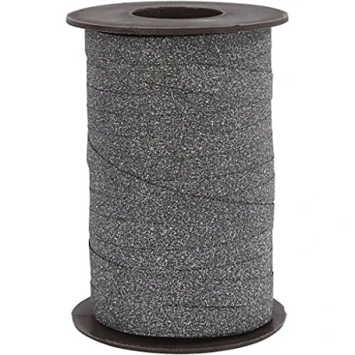Curling ribbon, W: 10 mm, black, glitter, 100m