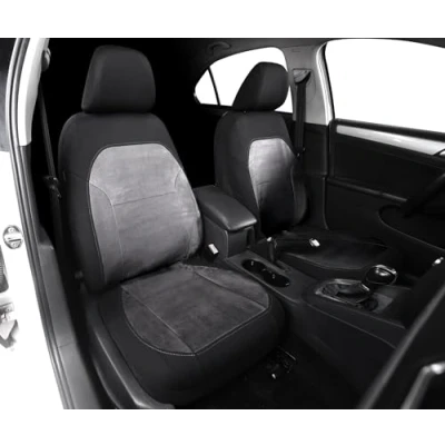 Customagic Universal Front Seat Covers Set Black and Grey for Driver Passenger Polyester