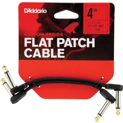 D’Addario Accessories Classic Series Flat Guitar Patch Cables Pedal Cable with ¼ Inch Ends Durable & Reliable Instrument for Pedalboards 4in Offset 2 Pack