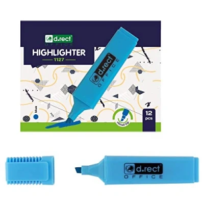 D.RECT 1127 Highlighters with Chisel Tip Blue Pack of 12