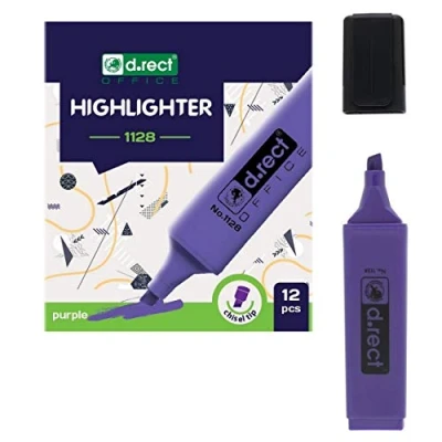 D.RECT 1128 Chisel Tip Highlighters Purple Pack of 12