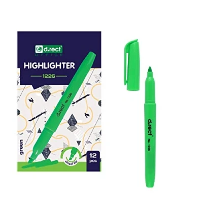 D.RECT 1226 Chisel Tip Highlighters Green Pack of 12