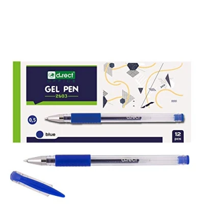 D.RECT 2603 Gel Pens Rubberised Grip Blue Pack of 12