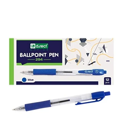 D.RECT 294 Ballpoint Pen with Ergonomic Rubberised Grip for Office and Household Line Width 0.7 mm Blue Pack of 12