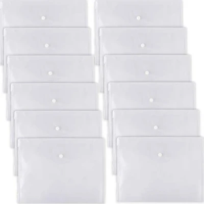 D.RECT 5530 Set 12 Pieces Document folders A4, File briefcases with Button Closure, Pocket Organizers for School and Office use, Envelope Organiser documents Letters, Clear