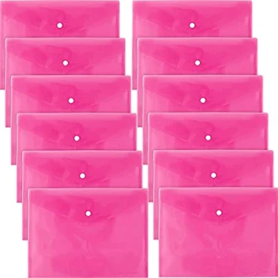 D.RECT 5530 Set 12 Pieces Document folders A4, File briefcases with Button Closure, Pocket Organizers for School and Office use, Envelope Organiser documents Letters, Pink
