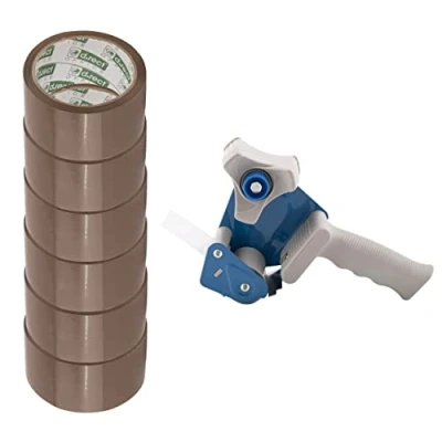 D.RECT Adhesive Tape Hand Dispenser with 6 Brown Parcel Rolls 50 m x 48 mm High Quality Robust for Tapes up to Wide Includes of Packing Tape,