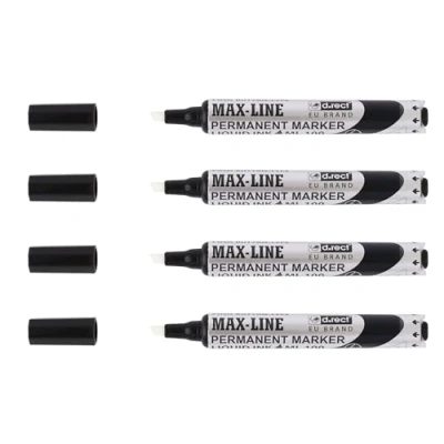 D.RECT Black Permanent Marker Bevelled Tip, featuring Pump Mechanism Robust with Piston, Pack of 4