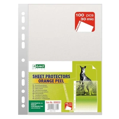 Box contents: 100 A4 punched pockets Document proof document sleeve made of polypropylene, open top. Grained, transparent. Film thickness: 0.03 mm The documents stored in a transparent film do not need to be punched or stapled, avoiding visible damage to the documents.