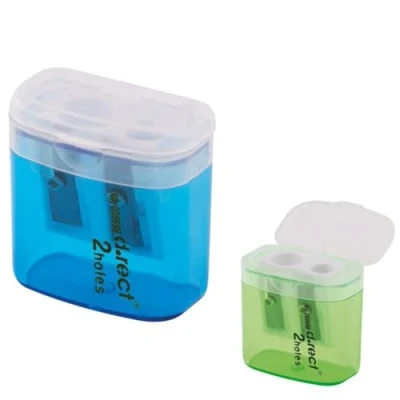 Amazon Plastic sharpener with rectangular collection container for sharpening lead and coloured pencils in two sizes The flap prevents chips from falling out of the container Available in 2 colours: blue and green (the colour will be sent randomly)