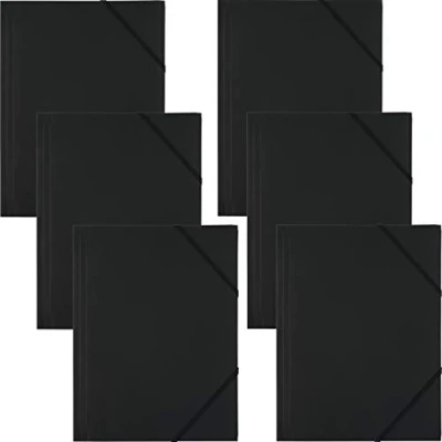 D.RECT Elasticated Folder Folders for Paperwork with Elastic Band Document Organiser School Office Home Pack of 6 Pieces 3 Flaps Size: A4 PP Polypropylene Black