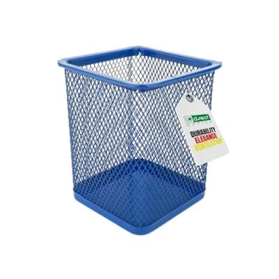 D.RECT Metal Square Pen Holder Cube Made of Wire Mesh Multifunctional Cup for Ballpoint Navy Blue 110851