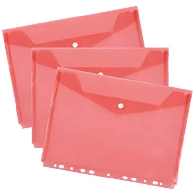 D.RECT PP Document Folder A4 with Snap Closure/Snap Closure Transparent Red Pack of 10