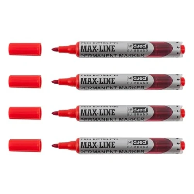 Permanent marker with liquid ink; Ensures even colour intensity down to the last drop; Versatile use in industry, trade and logistics Versatile: Can be used to write on paper, glass, metal, foil, wood, rubber and other materials Innovative ink supply through a special piston mechanism; the ink is applied simply by pressing the cap In electronics, permanent markers are used for labelling circuit diagrams and components Colour: Red