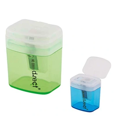 D.RECT Single Plastic Pencil Sharpener with Container Rectangular Lid Pack of 12