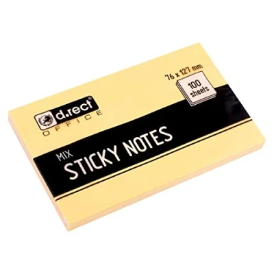 Sticky notes for writing and leaving short messages and reminders. With these you will never lose sight of your priorities. The pressure-sensitive adhesive allows repeated sticking and detaching of a note. 100 sheets of yellow Size: 76 x 127 mm