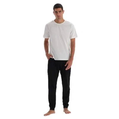Dagi Men's Regular Waist Jogger Knitted Single Pyjama Bottom, black, S