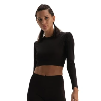 Dagi Women's Long Sleeve, Crew Neck, Basic T Shirt, Black, XXL
