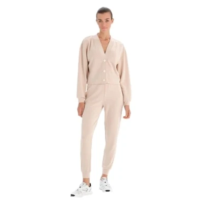 Dagi Women's Regular Waist Jogger Trousers Pyjama Bottom, Ecru, L