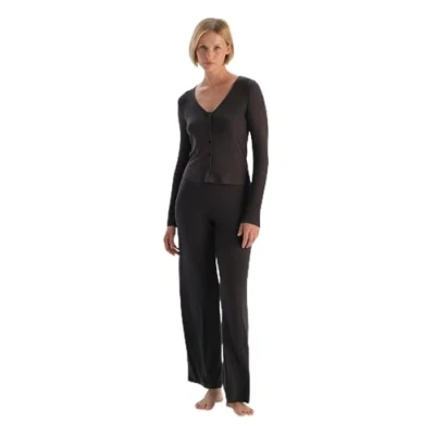 Dagi Women's U Neck Buttoned Pajama Set, Anthracite, XXL