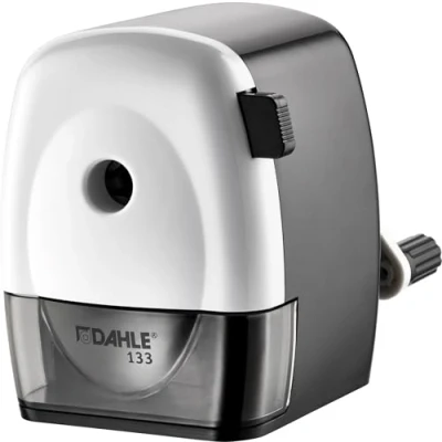 The Dahle 133 is a manual sharpener for pencils with a thickness of up to 11.5mm. The point shape is adjustable and thanks to the automatic stop you can sharpen an extra nice point. Thanks to the comfortable operation, you can do this in no time. The sharpener opens and locks automatically as soon as you insert a pencil. The soft clamps protect your pencils from damage. Thanks to the stable table clamp, you can securely attach this pencil sharpener to your desk. The large collection tray ensures that you can sharpen many pencils in succession.