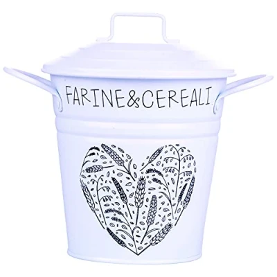 Daily Metal Flour and Cereal Bucket With lid With lettering Double handle Color: white Measurements: 13x13 cm, Weight: 0.661386786 Pounds, Manufacturer: Galileo Spa