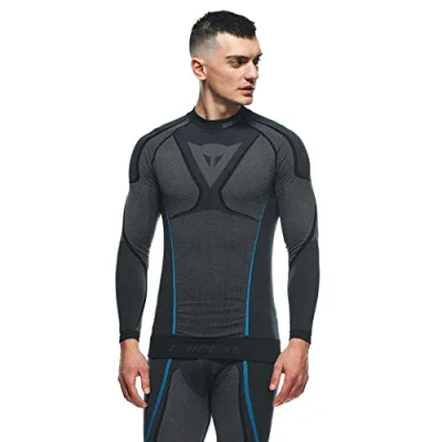 Dainese Dry LS functional shirt black / blue Men's long-sleeved shirt made from water-repellent Dryarn fabric for maximum breathability and comfort even in hot weather. The Dry LS is a baselayer shirt with long sleeves for men. Thanks to its construction in water-repellent Dryarn fabric, a technology that regulates perspiration and moisture and keeps the body dry at all times, it is suitable for all seasons, even in very hot weather. Dry LS is the ideal long-sleeved shirt for summer, as it offers excellent breathability and wicks perspiration and moisture away from the body. This guarantees maximum freshness and a pleasant feel even during the most strenuous efforts, while the seamless construction ensures a high level of comfort and freedom of movement. The reinforcements at the most exposed points ensure maximum comfort and durability of the garment Features: Abrasion resistant, tear resistant and anti-Pilling Bacteriostatic, hypoallergenic and anti-odor Differentiated armours Made in Italy Armor Pad for added comfort on contact Areas Seamless build for superior comfort Active moisture Management Air Grid to increase Perspiration Keeps you dry from moisture Maximum breathability for triboelectric charging Materials: 15% Poliamide 5% Elastane 80% Dryarn Environmentally-friendly fiber and 100% recyclable