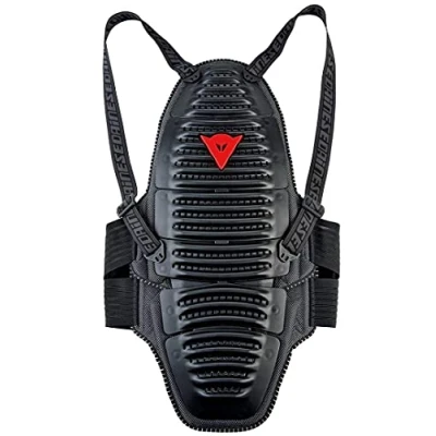 WAVE 11 D1 AIR Back Dainese WAVE D1 AIR motorcycle back protector. Certified back protector (EN 1621.2/2014 level 2), light, ergonomic and ventilated, adjustable straps. Ergonomics: Adjustable and removable straps Double Adjustable lumbar band Liner in thermoformed polyethylene foam Lumbar joint Main Materials: Backprotector with perimetral double density thermoformed support structure Inner core in aluminium Honeycomb frame and Crash Absorb® Performance Shock: Cat. II - EN 1621.2/2014 lev. 2 Standard External polypropylene plates with perforated and waved structure Temperature: External perforated plates Liner inside back in polyester mesh fabric Lumbar strip liner and braces in double jersey