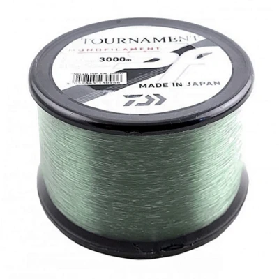 Daiwa Tournament SF Nylon - Monofilament line - Length:3000m - Color: Green - Available in several diameters - Diameter / Break strength: 0.16mm / 2.2kg - Diameter / Break strength: 0.18mm / 2.9kg - Diameter / Break strength: 0.20mm / 3.5kg - Diameter / Break strength: 0.23mm / 4.5kg - Diameter / Break strength: 0.26mm / 5.7kg - Diameter / Break strength: 0.30mm / 7.9kg - Diameter / Break strength: 0.33mm / 9.0kg - Diameter / Break strength: 0.36mm / 11.1kg - High linear strength - Superior knot strength - Exceptional wet knot strength - High abrasion resistance - Low elongation Made in Japan, Tournament SF is a nylon line of exceptional quality. This line has very little stretch, so you can set the hook in no time. The Tournament SF offers high wet knot strength and high abrasion resistance at the same time. The soft and smooth surface glides silently through the guides and optimizes casting distances. The light gray color blends discreetly underwater.