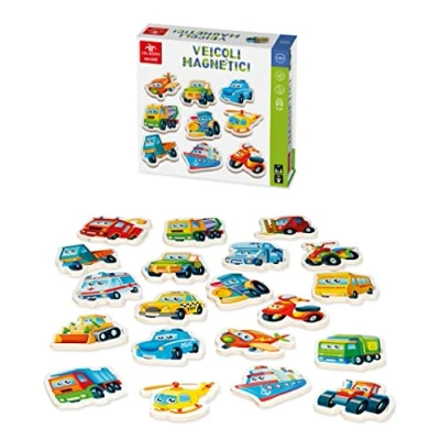20 Vehicle Shaped Magnets storage box with convenient magnetic closure for children from 3 years and up, Manufacturer: Dal