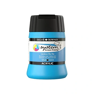 Daler Rowney System3 Acrylic Screen Printing Ink, Plastic Pot, 8.45oz 250 ml, Coeruleum Blue Hue