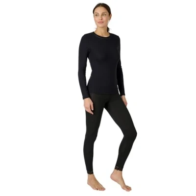 Damart Women's T Shirt Fine Côte Sensitive, Col Rond Thermolactyl, Manche Longue, Black, 8